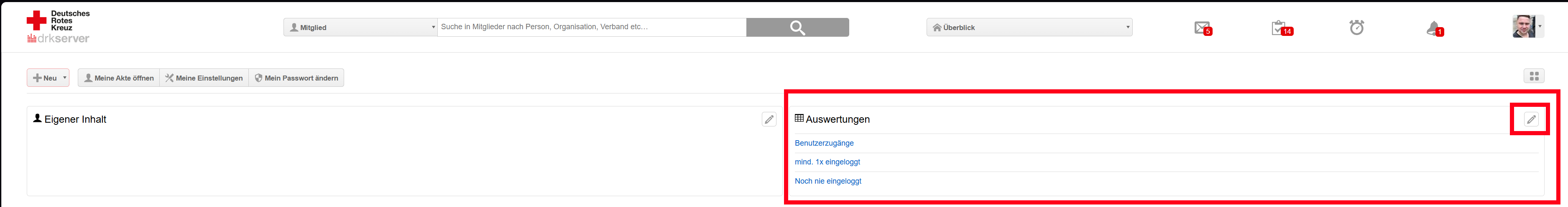 Schritt 2: Auf der Startseite befindet sich rechts der Bereich "Auswertungen" bei diesem auf den Stift zum bearbeiten klicken