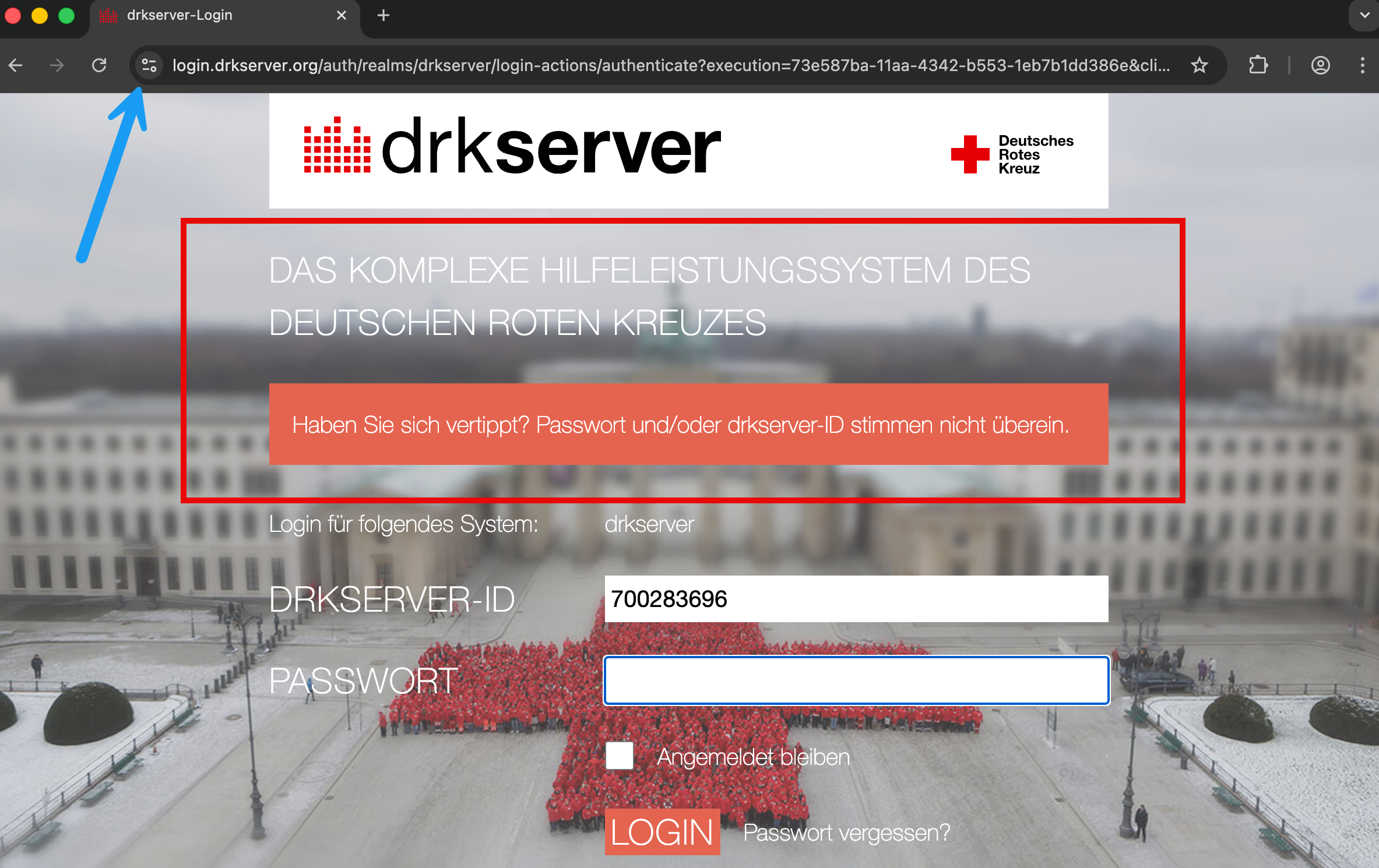 Jetzt die Seite neu öffnen auf Portal.drkserver.org und ab jetzt wird man auf die BRK.id Seite geleitet und kann sich korrekt einloggen.